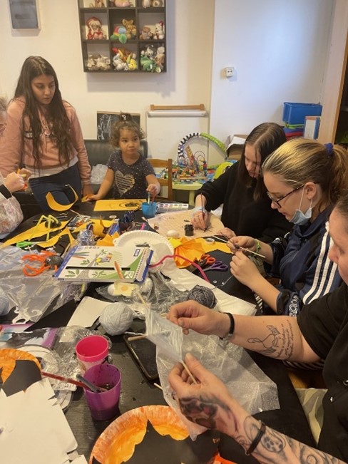 Kitűzött Cél megvalósulása : Közös kézműves foglalkozás keretében a halloweent ünnepeltük. beszélgettünk a hallowen kialakulásáról, az ahhoz kapcsolódó hagyományokról. A gyerekek és a felnőttek egyaránt nagyon élvezték a közös programot. a beszélgetést követően Közösen készítettünk denevért, pókot, szellemet, tököt, mellyel a közösségi teret és a szobájukat is kidíszíthették.
